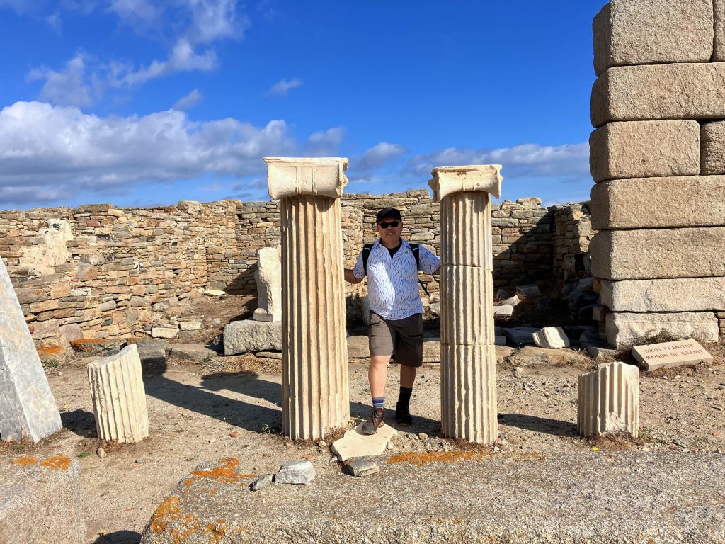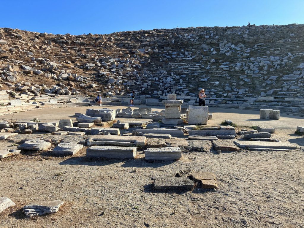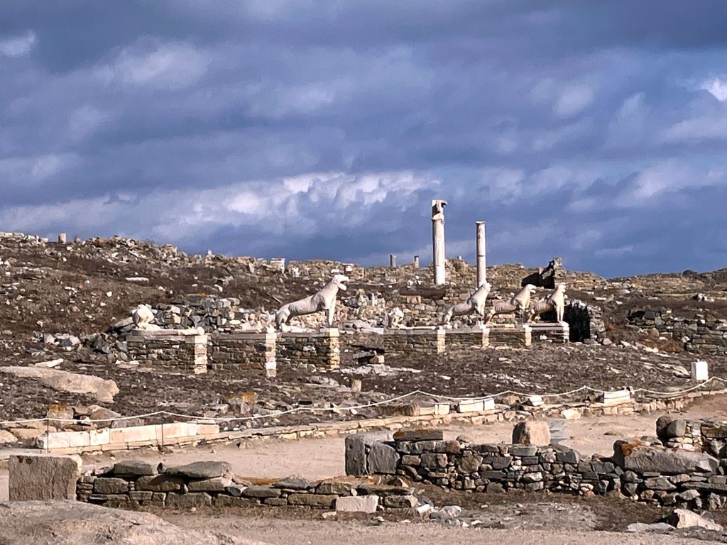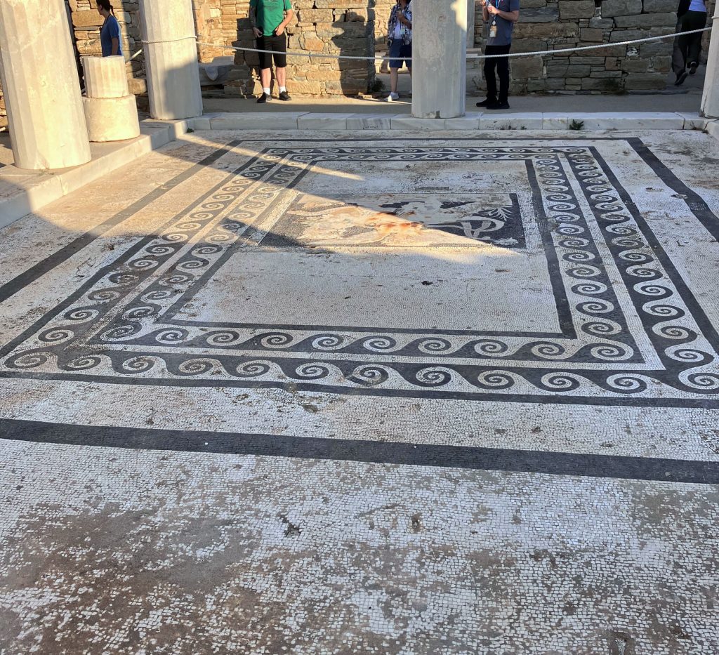 After we visited some of the other, more preserved points of interest on the island, the trip culminated at the famous Terrace of the Lions, where we could see a few workers doing restoration work from a distance.